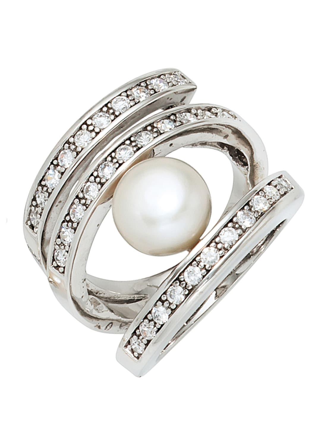 Perlenring JOBO Gr. 56, silber (silber 925), Fingerringe, Damen, 56, Perlen Silber 925 (Sterlingsilber), Perlen, Silber 925 (Sterlingsilber), Perlenring, breit 925 Silber Süßwasser Perle und Zirkonia