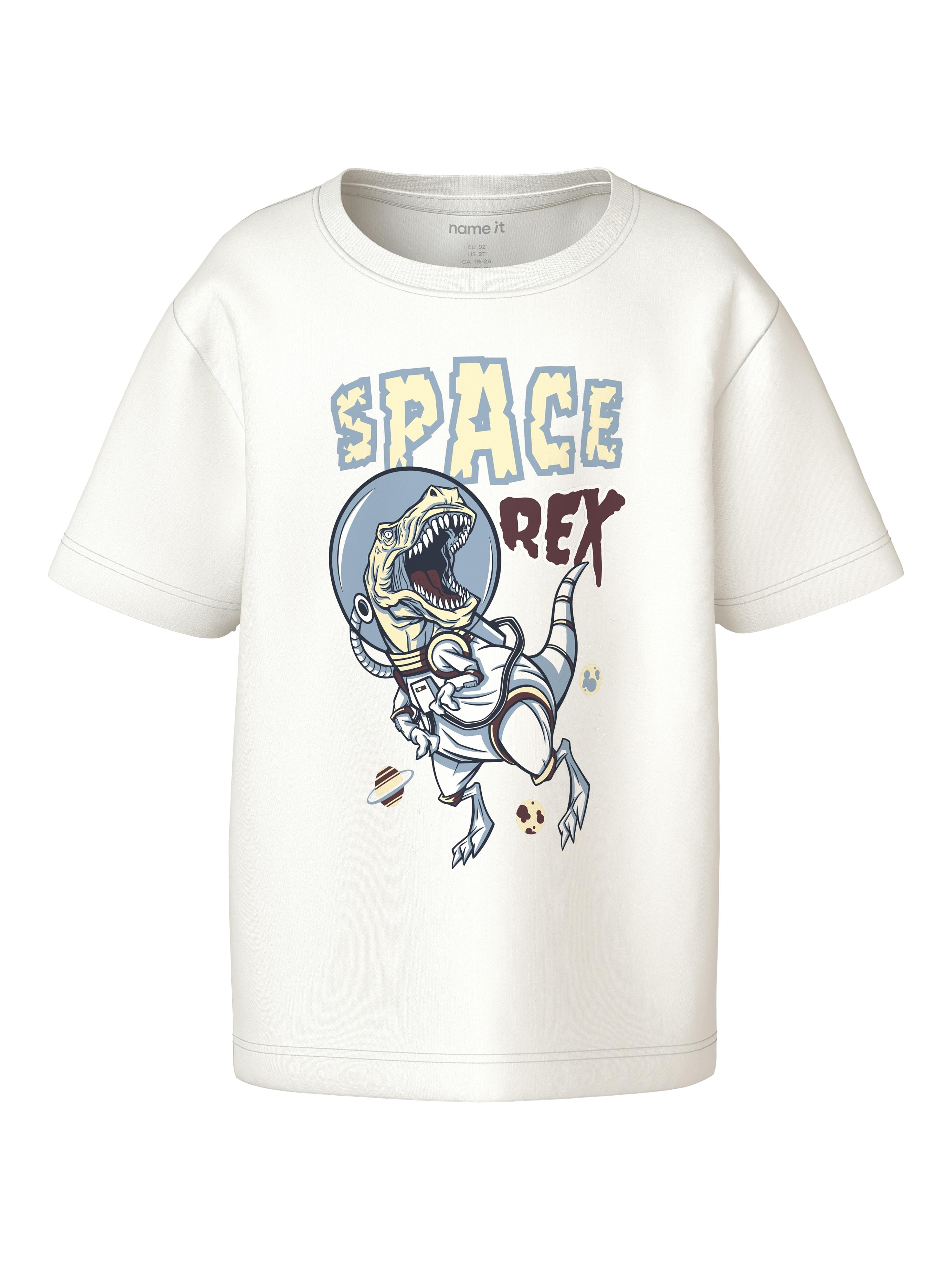 T-Shirt NAME IT "NMMVICTOR SS NREG TOP", Jungen, Gr. 92, cloud dancer print:dino rex, Jersey, Obermaterial: 100% Baumwolle, bedruckt, normal normal, Rundhals, Shirts T-Shirt
