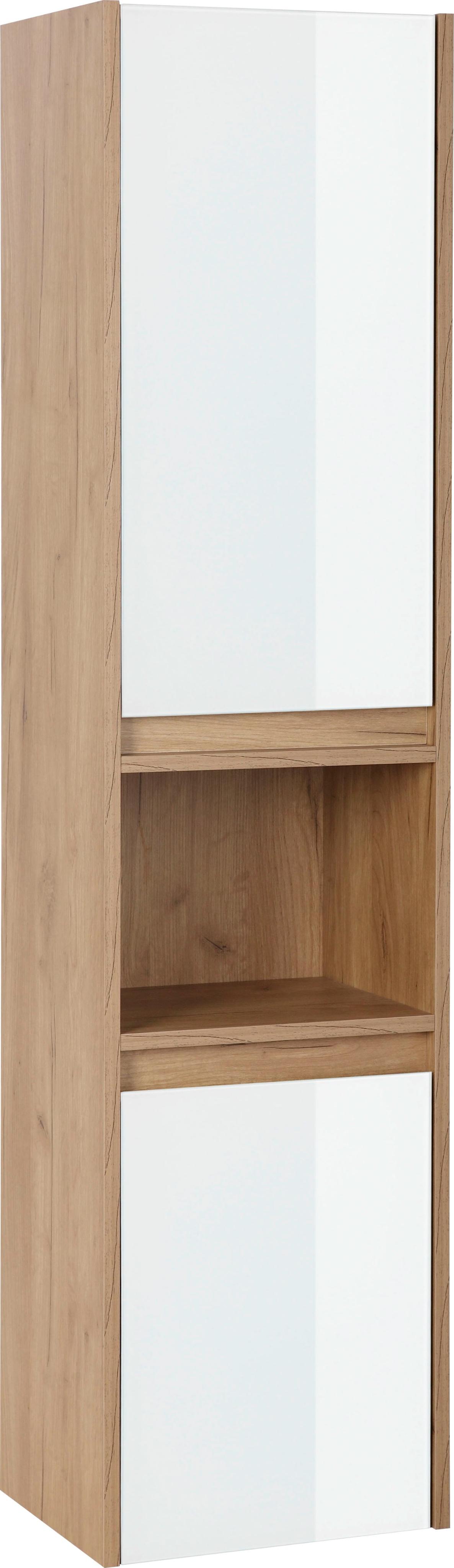 Hochschrank WELLTIME "Torun Badezimmerschrank", weiß (weiß, eiche), B:35cm H:145cm T:30cm, Schränke, Hochschrank, Badschrank Schrank Breite 35 cm mit Glasfronten